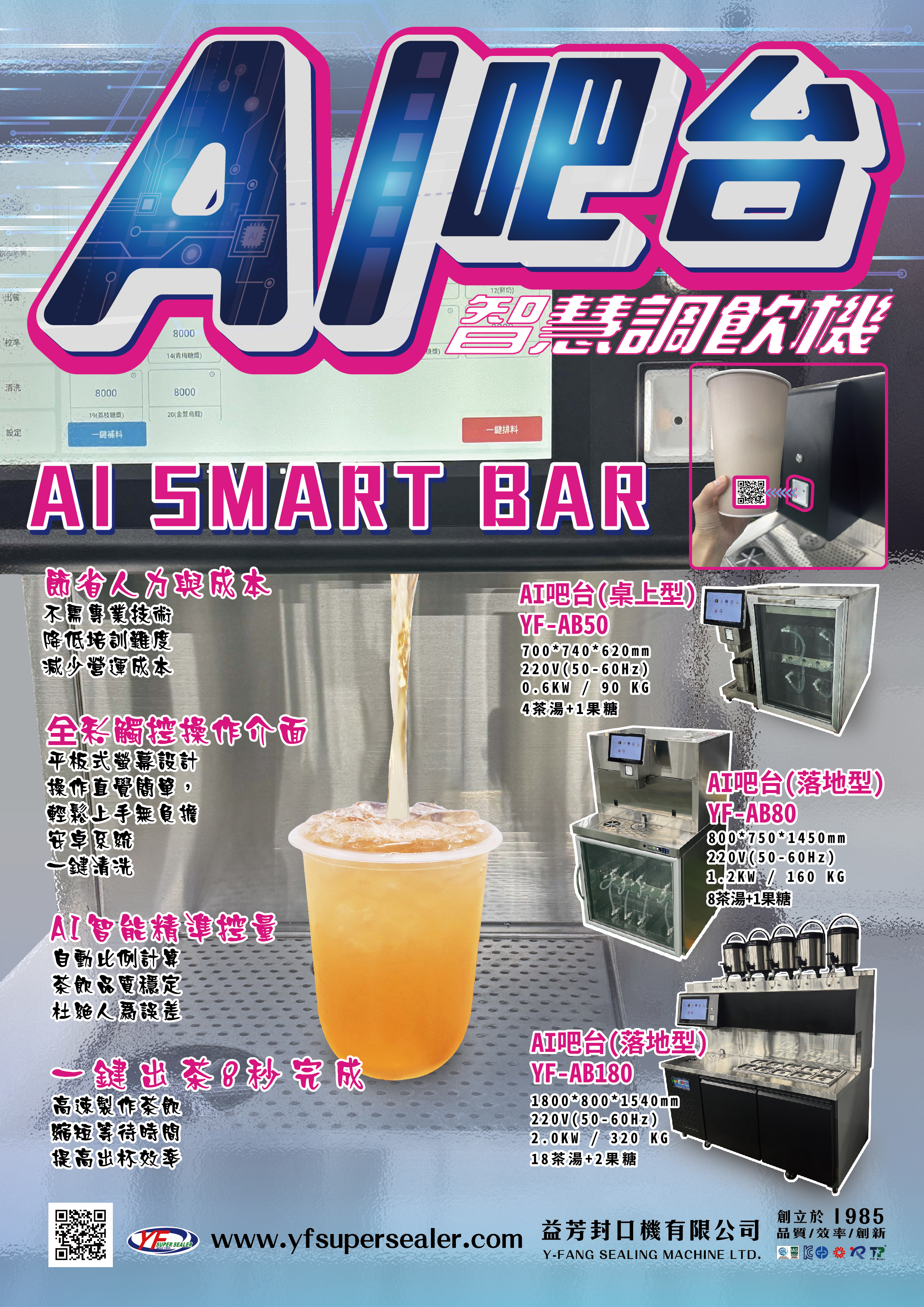 益芳AI吧台YF-AB180 落地型,AI智能精準控量,茶飲品質穩定。觸控操作介面,操作簡單與快速上手,一鍵出茶8秒完成,高速滿足各種飲品製作需求。
